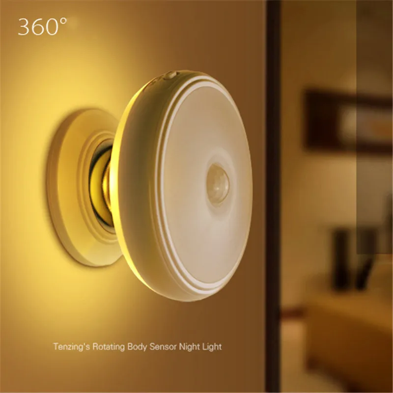 DC5V 360 Degree Rotation Human Body Sensor LED Night Light Magnetic Holder USB Rechargeable Lamp Ye