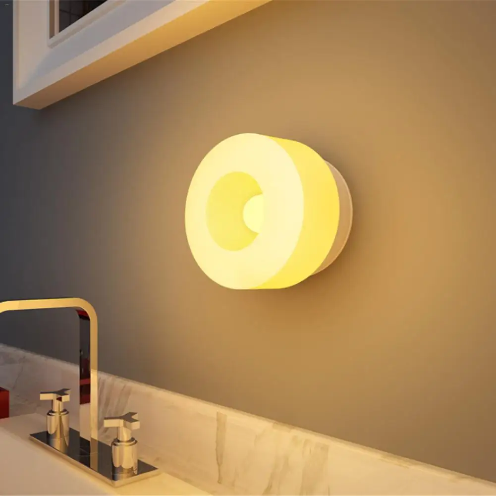 1PCS Innovative USB Human Body Induction Intelligent Round Night Light Closet Stairs Basement Hallw